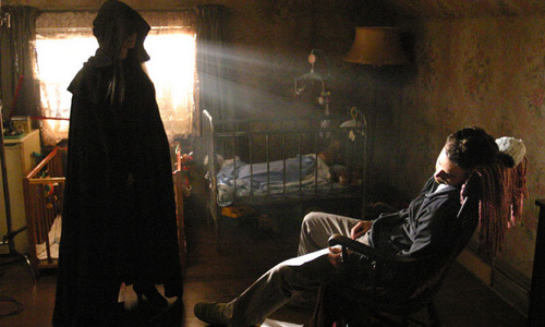 Tras las paredes es la adaptación de Sueños de la casa de la bruja, relato que se ha reseñado por aquí recientemente y que cuenta la historia de un joven estudiante de matemáticas que para finalizar su tesis alquila la habitación de una vieja mansión donde supuestamente había vivido una bruja expulsada de Salem en extrañas circunstancias. Como era de esperar, Gordon se muestra altamente respetuoso al relato original, y no solo por seguir de manera paulatina cada uno de los sucesos que ya daban forma a la novela. Como ya ocurría en otras de sus adaptaciones, el director parece consciente de lo complicado y artificioso que podría suponer un intento de adaptar las distinciones de horror de Lovecraft en su concepción del terror, por lo que aquí muestra un especial recelo de potenciar las escenas oníricas y sobrenaturales (que las hay, pero ejecutadas de una manera mucho más limitada que en el relato, donde es su principal arma narrativa), conduciendo la historia por el terror más tradicional: una casa aparentemente encantada, extraños personajes anexos a ella y situaciones que traspasan con creces la barrera de lo surrealista.