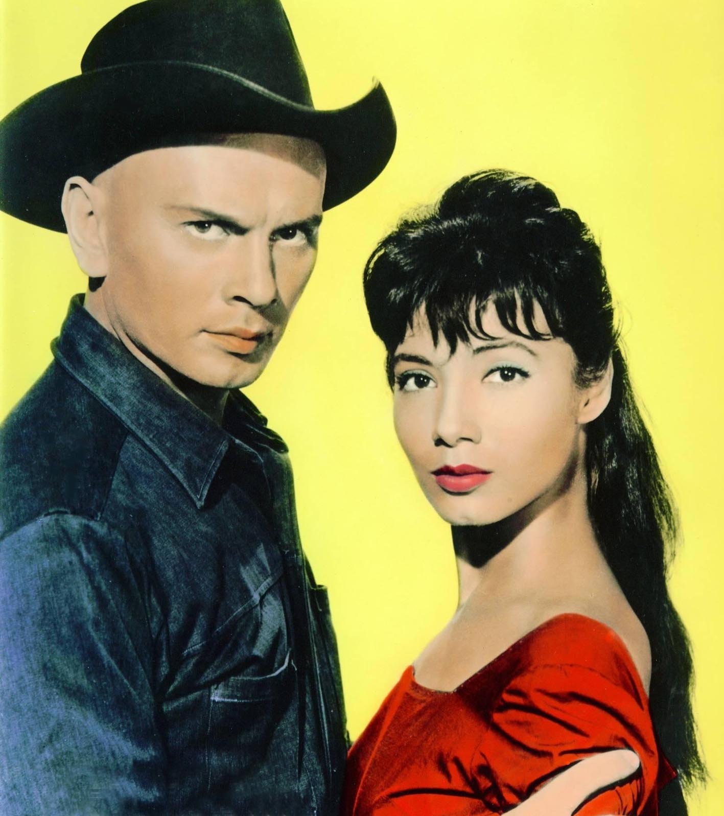 Rosenda Monteros junto a Yul Brynner en una imagen promocional de Los Siete Magníficos (The Magnificent Seven, John Sturges, 1960)