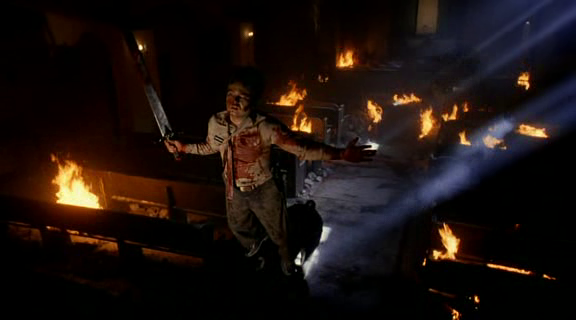 A partir de entonces, una orgía de sangre y muerte se desarrollará en el sótano de la Iglesia, con nuestro héroe mutilando cabezas a diestro y siniestro (algunas imágenes tendrán bastante impacto dentro de su corte satánico, como el momento en el que una cabeza animal se sobrepone en el rostro de Stanley), cerdos devoradores de carne humana y hasta bolas de fuego derribando lo que hasta ese momento era la iglesia del cuartel militar. También se presenciarán cuerpos en llamas, personajes sumidos en el pánico y una ambientación puramente satanista (la música, uno de los componentes del film que más lo enlazan con el género del terror, estallará ,al igual que el desarrollo narrativo, en una catarsis de cantos y acordes con hasta extremada dramatización), mientras que Stanley aparece convertido en todo un ángel caído vengador, cometiendo una cruenta matanza contra todos aquellos que abusaron y/o dudaron de él.
